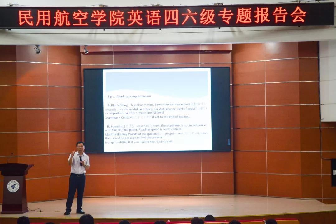 史院长的专题报告十分接地气,实实在在地为民航学子指点迷津,提供了行之有效的学习方法。希望民航学子在听取史院长专题报告之后,尽快打造出一套适合自己的英语学习方法,争取早日通过英语四六级考试!