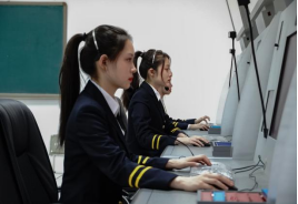航空服务CBT实验室位于航宇馆243-2室,占地面积60平方米,配备终端服务器及学生用机共31台套,统一采用民航乘务教育在线学习系统,可以进行民航乘务人员专业化形象、规范动作、地面服务、模拟面试、知识拓展、飞行前准备、安全演示与安全检查、服务提升与管理等二十五个大项、100余个小项的在线学习与培训,对航空服务艺术与管理专业学生进行全方位的理论知识传授与实践技能培养。