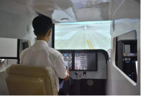 飞行模拟实验室位于航宇馆241,242室,采用了CESSNA172固定模拟飞行设备,驾驶舱及内部常用配件采用与真机1:1进行设计,用于更加真实环境中的模拟飞行训练。现有高配机一台以及低配机三台,建设费用约150万人民币。实验室主要承担飞行技术专业学生初级飞行模拟训练实训的教学任务。通过模拟机飞行训练,使学生掌握飞机基本知识、飞行原理、飞行性能、仪表飞行、驾驶舱资源管理、航空气象、飞行中人的因素、空中交通管理、民用航空法规等方面的知识,具有运用所学理论知识指导飞机驾驶实践的综合应用能力,具有熟练的应用飞行技术的能力,包括驾驶技术、航行技术,以及驾驶舱资源管理能力和机组配合能力,为后期的飞行训练实践打下良好的基础。
